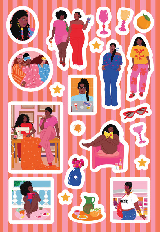 At the heart of Mimi’s work are joy, rest, sisterhood, justice, and the power of saying no. She wants her art to feel like a soft place to land, a reminder to slow down, embrace whimsy, and feel affirmed, while also making it clear that justice, representation, and dignity belong in art just as much as they do in everyday life.