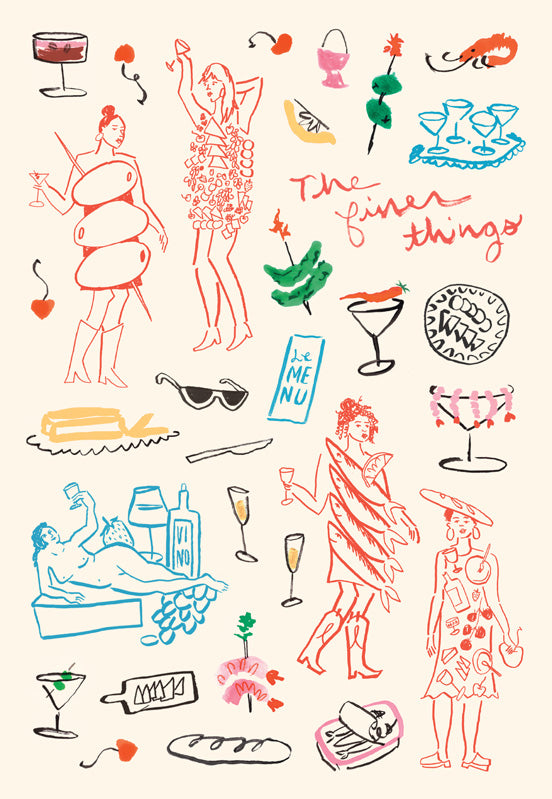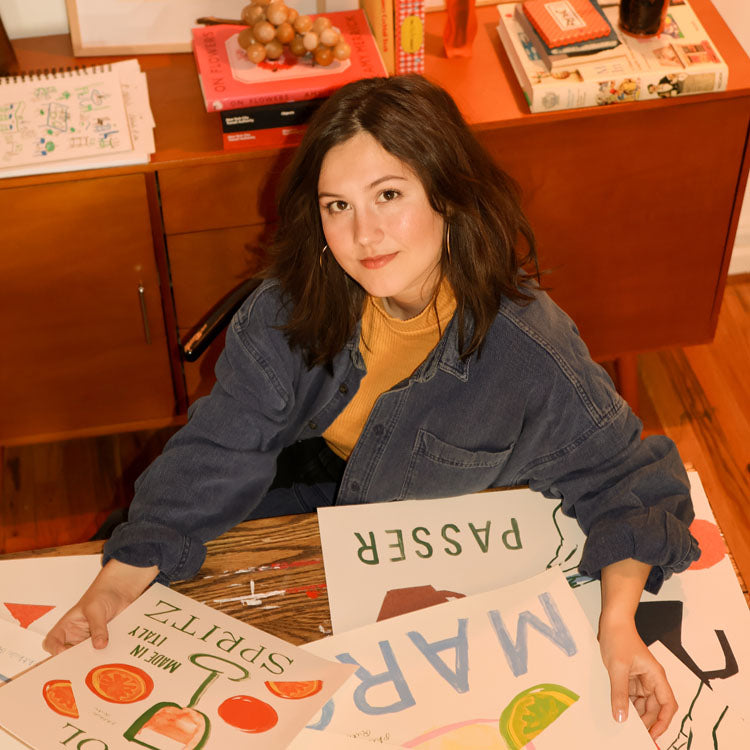 With a background in fine art and product design, Meghan launched her business three years ago, hoping to create some passive income while working her full-time design job. Her “Girls Want Dinner Parties” print series had a viral moment in 2023, reaching over one million views and putting her work on the radar. Since then, she has collaborated on apparel and home items with Anthropologie, released a collection of invitations with Paperless Post, and created a line of phone cases and accessories with The Dairy. In 2025, she was featured as a “Cool Friend” in Cool Stuff NYC, a guide to the coolest things happening in New York City.